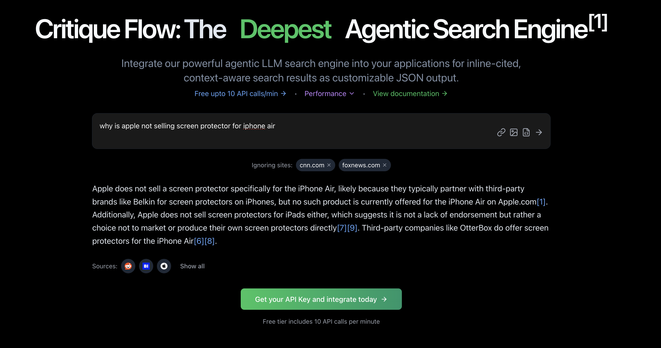 Examples of Critique's Agentic Search vs other LLM search providers :