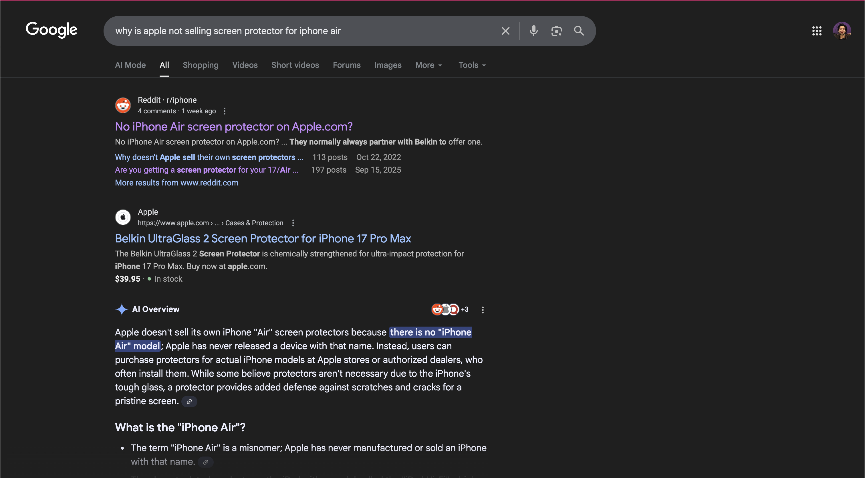 09/27/25: Searching for information on iPhone Air just after it's release, google claims there is no iPhone Air